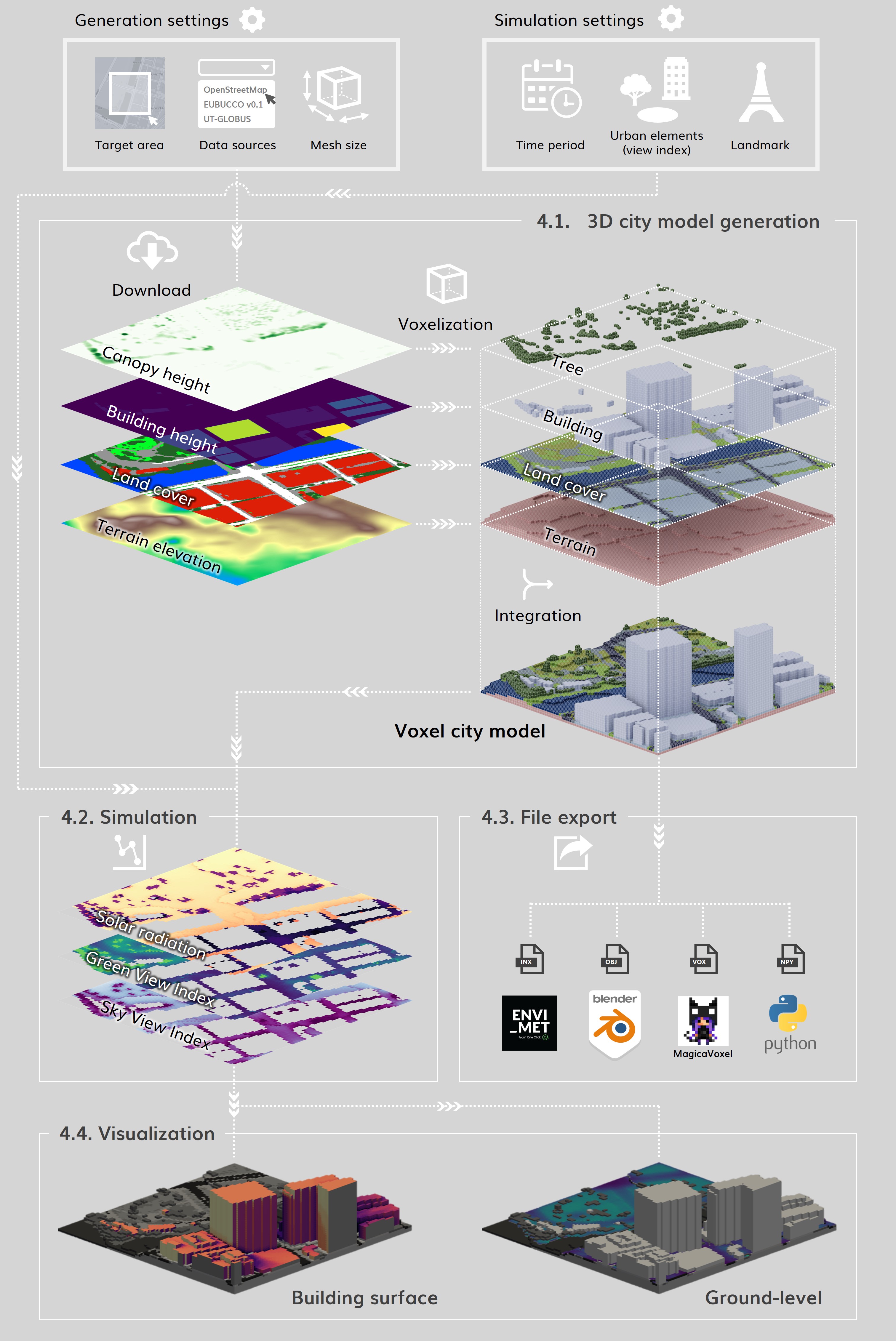 Recommended citation: Fujiwara, K., Tsurumi, R., Kiyono, T., Fan, Z., Liang, X., Lei, B., Yap, W., Ito, K., Biljecki, F., 2026. VoxCity: A seamless framework for open geospatial data integration, grid-based semantic 3D city model generation, and urban environment simulation. Computers, Environment and Urban Systems 123, 102366. https://doi.org/10.1016/j.compenvurbsys.2025.102366